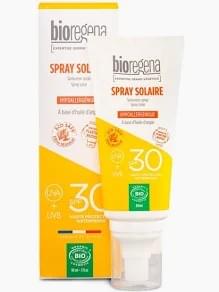 Bioregena Solkremspray etterlater ingen hvit film, trekker raskt inn i huden og er vannsikker.