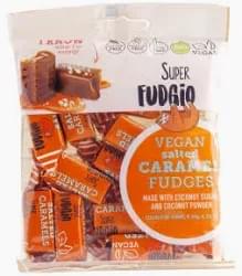 Super fudgio er en serie super gode veganske, glutenfrie, melkefrie og økologiske myke karameller. De er søtet med kokosblomstsukker som er en søtning som inneholder mineraler, har lav glykemisk indeks og er gunstig for tarmen. Super Fudgio karameller har få og kun naturlige ingredienser, dvs ingen kunstige farger eller smakstilsetninger.